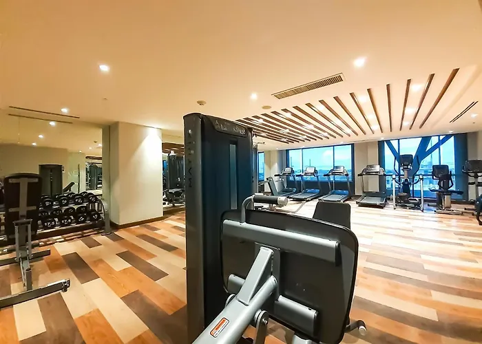 Featuring a Jacuzzi and a sauna, the 4-star Shore Residences is situated within a 5-minute stroll of the indoor Mall of Asia Arena in Manila. The hotel offers an indoor swimming pool and the possibility of trying lawn tennis, mini golf and cycling.